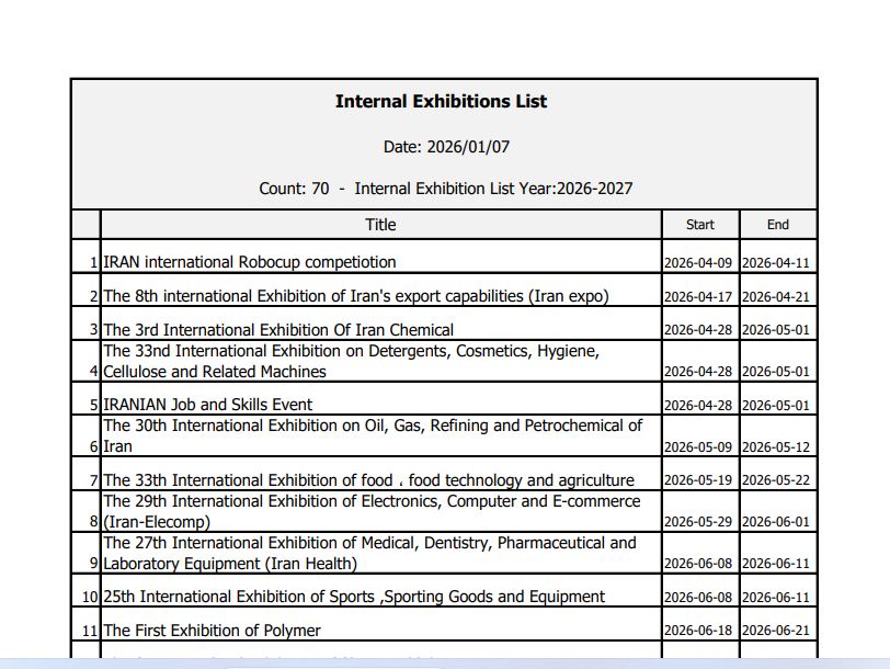 جدول المعارض و الفعالیات الدولیة لجمهوریة إیران الإسلامیة لهذا العام